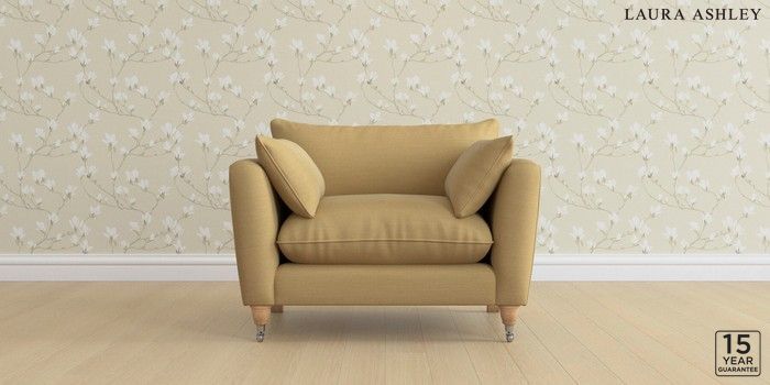 6.12.13 Buy Casterton by Laura Ashley Snuggle Kinsham Ochre Yellow Low Chrome Castor - Light Oak from the Laura Ashley online shop Click here to use our website with more accessibility support, for example screen readers
