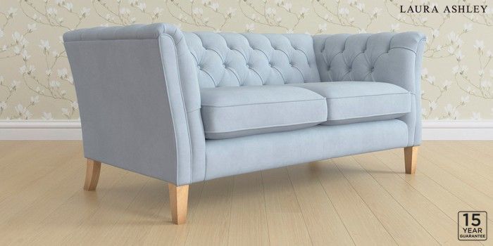 6.12.13 Buy Chatsworth Button Back by Laura Ashley 2 Seater Sofa Ailsworth Newport Blue Straight Mid - Light Oak from the Laura Ashley online shop Click here to use our website with more accessibility support, for example screen readers