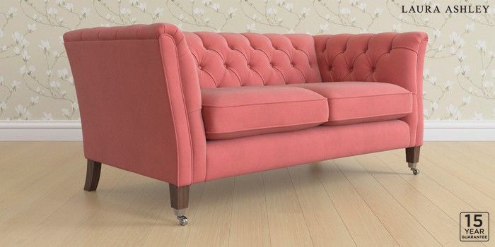 6.12.13 Buy Chatsworth Button Back by Laura Ashley 2 Seater Sofa Ailsworth Old Rose Pink Straight Chrome Castor - Chestnut from the Laura Ashley online shop Click here to use our website with more accessibility support, for example screen readers