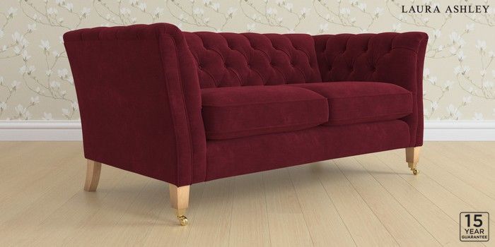 6.12.1 Buy Chatsworth Button Back by Laura Ashley 2 Seater Sofa Alwyn Velvet Burgundy Red Straight Brass Castor - Light Oak from the Laura Ashley online shop Click here to use our website with more accessibility support, for example screen readers
