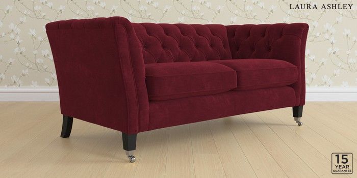 6.12.1 Buy Chatsworth Button Back by Laura Ashley 2 Seater Sofa Alwyn Velvet Burgundy Red Straight Chrome Castor - Black from the Laura Ashley online shop Click here to use our website with more accessibility support, for example screen readers