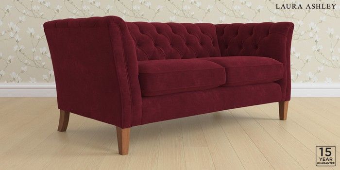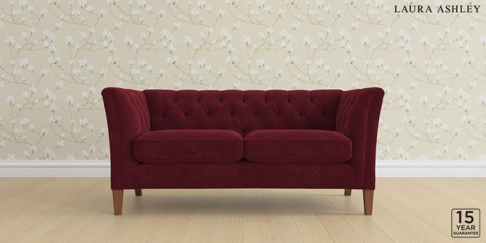 6.12.13 Buy Chatsworth Button Back by Laura Ashley 2 Seater Sofa Alwyn Velvet Burgundy Red Straight Mid - Teak from the Laura Ashley online shop Click here to use our website with more accessibility support, for example screen readers
