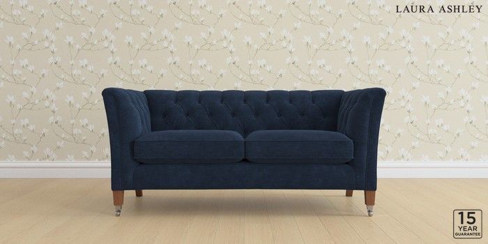 6.12.1 Buy Chatsworth Button Back by Laura Ashley 2 Seater Sofa Alwyn Velvet Midnight Navy Straight Chrome Castor - Teak from the Laura Ashley online shop Click here to use our website with more accessibility support, for example screen readers