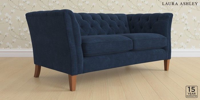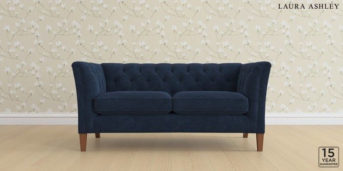 6.12.13 Buy Chatsworth Button Back by Laura Ashley 2 Seater Sofa Alwyn Velvet Midnight Navy Straight Mid - Teak from the Laura Ashley online shop Click here to use our website with more accessibility support, for example screen readers
