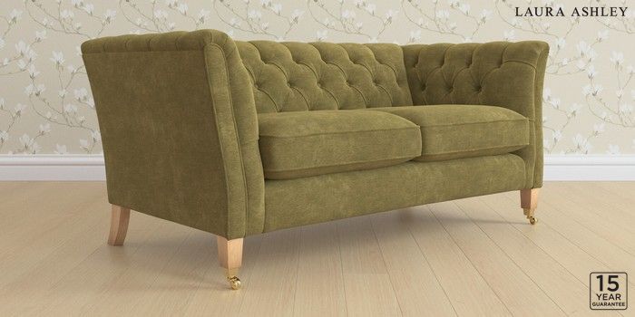 6.12.1 Buy Chatsworth Button Back by Laura Ashley 2 Seater Sofa Alwyn Velvet Olive Green Straight Brass Castor - Light Oak from the Laura Ashley online shop Click here to use our website with more accessibility support, for example screen readers