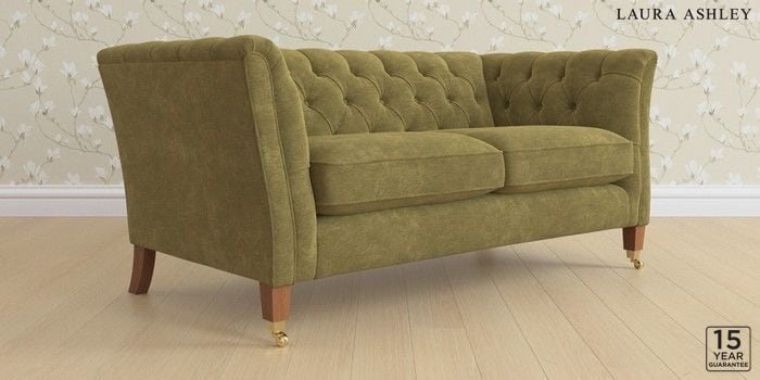 6.12.1 Buy Chatsworth Button Back by Laura Ashley 2 Seater Sofa Alwyn Velvet Olive Green Straight Brass Castor - Teak from the Laura Ashley online shop Click here to use our website with more accessibility support, for example screen readers