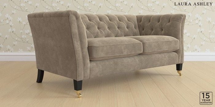 6.12.13 Buy Chatsworth Button Back by Laura Ashley 2 Seater Sofa Alwyn Velvet Truffle Natural Straight Brass Castor - Black from the Laura Ashley online shop Click here to use our website with more accessibility support, for example screen readers