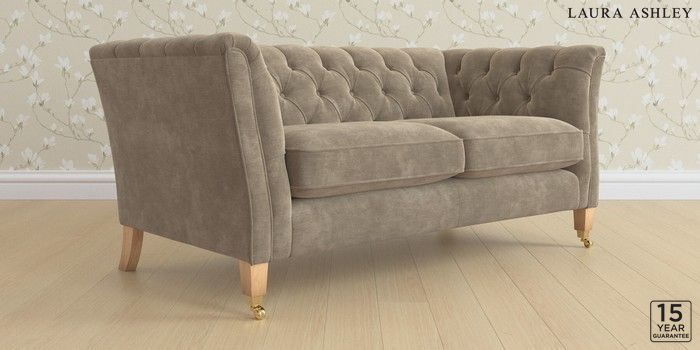 6.12.1 Buy Chatsworth Button Back by Laura Ashley 2 Seater Sofa Alwyn Velvet Truffle Natural Straight Brass Castor - Light Oak from the Laura Ashley online shop Click here to use our website with more accessibility support, for example screen readers