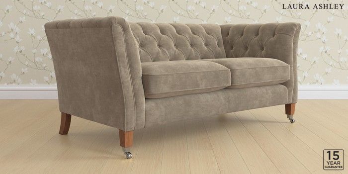 6.12.1 Buy Chatsworth Button Back by Laura Ashley 2 Seater Sofa Alwyn Velvet Truffle Natural Straight Chrome Castor - Teak from the Laura Ashley online shop Click here to use our website with more accessibility support, for example screen readers