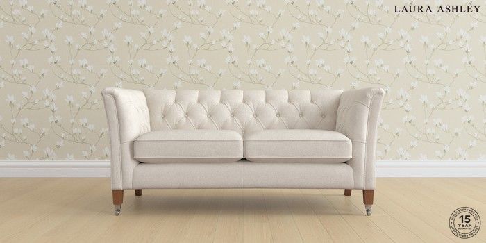 7.2.6 Buy Chatsworth Button Back by Laura Ashley 2 Seater Sofa Anneliese Oyster Natural Straight Chrome Castor - Teak from the Laura Ashley online shop Click here to use our website with more accessibility support, for example screen readers