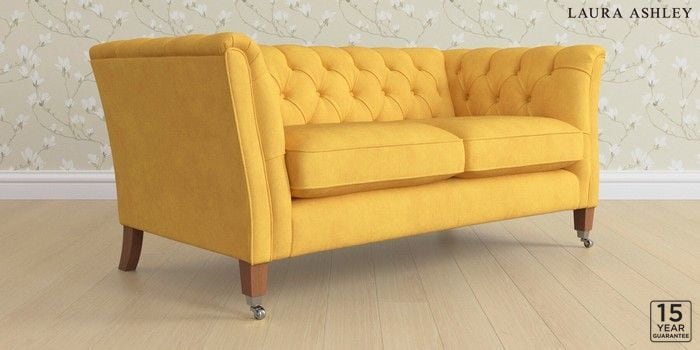 6.12.1 Buy Chatsworth Button Back by Laura Ashley 2 Seater Sofa Bainton Ochre Yellow Straight Chrome Castor - Teak from the Laura Ashley online shop Click here to use our website with more accessibility support, for example screen readers