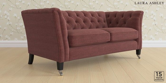 6.12.13 Buy Chatsworth Button Back by Laura Ashley 2 Seater Sofa Edwin Chenille Burgundy Red Straight Chrome Castor - Black from the Laura Ashley online shop Click here to use our website with more accessibility support, for example screen readers