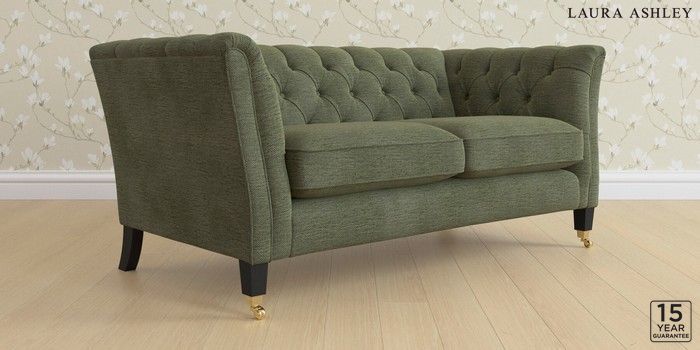 6.12.1 Buy Chatsworth Button Back by Laura Ashley 2 Seater Sofa Edwin Chenille Hedgerow Green Straight Brass Castor - Black from the Laura Ashley online shop Click here to use our website with more accessibility support, for example screen readers