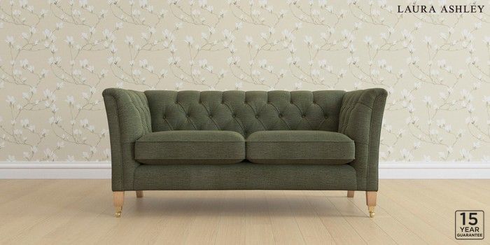 6.12.1 Buy Chatsworth Button Back by Laura Ashley 2 Seater Sofa Edwin Chenille Hedgerow Green Straight Brass Castor - Light Oak from the Laura Ashley online shop Click here to use our website with more accessibility support, for example screen readers