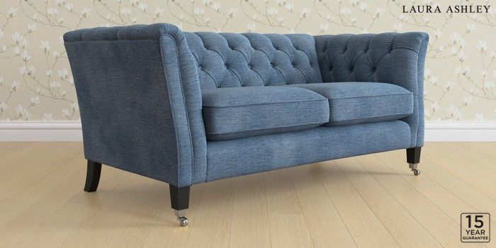 6.12.1 Buy Chatsworth Button Back by Laura Ashley 2 Seater Sofa Edwin Chenille Seaspray Blue Straight Chrome Castor - Black from the Laura Ashley online shop Click here to use our website with more accessibility support, for example screen readers