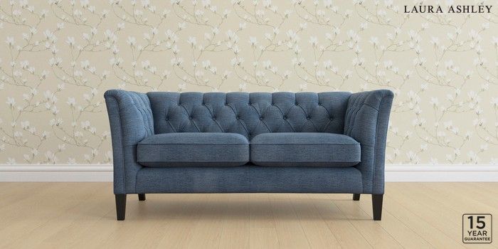 6.12.13 Buy Chatsworth Button Back by Laura Ashley 2 Seater Sofa Edwin Chenille Seaspray Blue Straight Mid - Black from the Laura Ashley online shop Click here to use our website with more accessibility support, for example screen readers