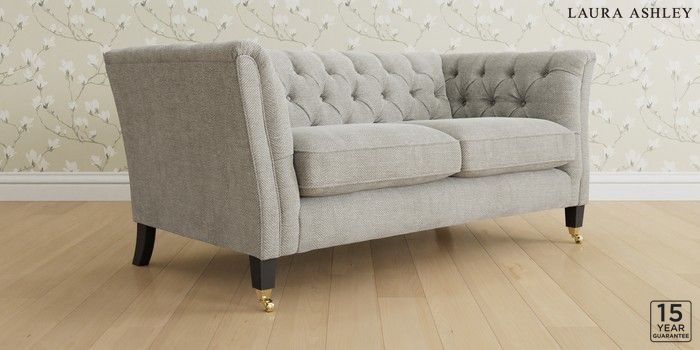 6.12.1 Buy Chatsworth Button Back by Laura Ashley 2 Seater Sofa Edwin Chenille Silver Grey Straight Brass Castor - Black from the Laura Ashley online shop Click here to use our website with more accessibility support, for example screen readers