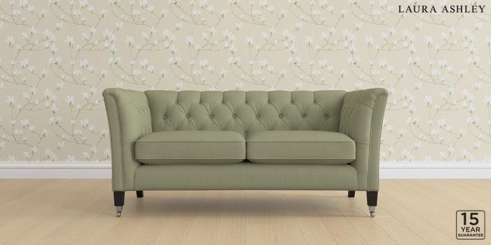 6.12.1 Buy Chatsworth Button Back by Laura Ashley 2 Seater Sofa Edwin Herringbone Hedgerow Green Straight Chrome Castor - Black from the Laura Ashley online shop Click here to use our website with more accessibility support, for example screen readers