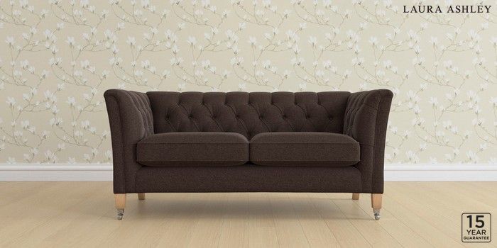 6.12.13 Buy Chatsworth Button Back by Laura Ashley 2 Seater Sofa Harley Chestnut Brown Straight Chrome Castor - Light Oak from the Laura Ashley online shop Click here to use our website with more accessibility support, for example screen readers