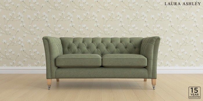6.12.1 Buy Chatsworth Button Back by Laura Ashley 2 Seater Sofa Harley Moss Green Straight Chrome Castor - Light Oak from the Laura Ashley online shop Click here to use our website with more accessibility support, for example screen readers