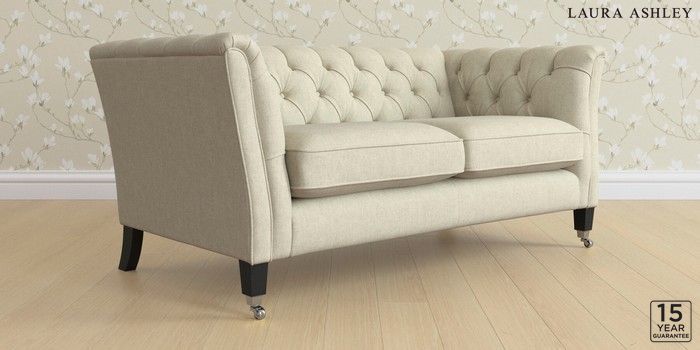6.12.13 Buy Chatsworth Button Back by Laura Ashley 2 Seater Sofa Kinsham Natural Straight Chrome Castor - Black from the Laura Ashley online shop Click here to use our website with more accessibility support, for example screen readers