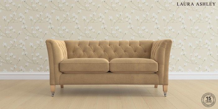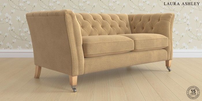 6.12.1 Buy Chatsworth Button Back by Laura Ashley 2 Seater Sofa Lundar Chenille Caramel Natural Straight Chrome Castor - Light Oak from the Laura Ashley online shop Click here to use our website with more accessibility support, for example screen readers