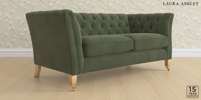 6.12.1 Buy Chatsworth Button Back by Laura Ashley 2 Seater Sofa Lundar Chenille Ivy Green Straight Brass Castor - Light Oak from the Laura Ashley online shop Click here to use our website with more accessibility support, for example screen readers