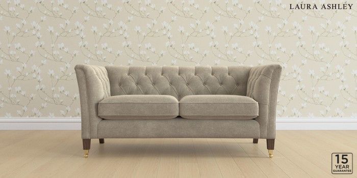 6.12.1 Buy Chatsworth Button Back by Laura Ashley 2 Seater Sofa Lundar Chenille Truffle Natural Straight Brass Castor - Chestnut from the Laura Ashley online shop Click here to use our website with more accessibility support, for example screen readers