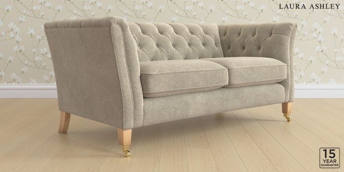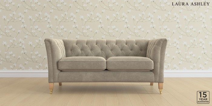 6.12.1 Buy Chatsworth Button Back by Laura Ashley 2 Seater Sofa Lundar Chenille Truffle Natural Straight Brass Castor - Light Oak from the Laura Ashley online shop Click here to use our website with more accessibility support, for example screen readers