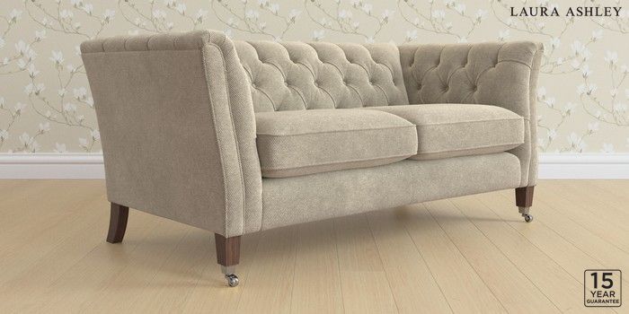 6.12.13 Buy Chatsworth Button Back by Laura Ashley 2 Seater Sofa Lundar Chenille Truffle Natural Straight Chrome Castor - Chestnut from the Laura Ashley online shop Click here to use our website with more accessibility support, for example screen readers