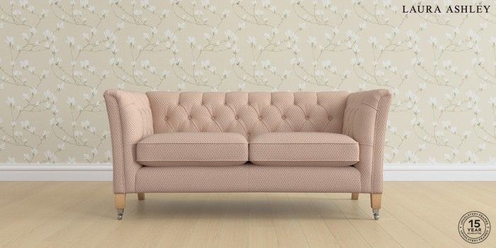 6.12.1 Buy Chatsworth Button Back by Laura Ashley 2 Seater Sofa Melbreak Geo Chalk Pink Straight Chrome Castor - Light Oak from the Laura Ashley online shop Click here to use our website with more accessibility support, for example screen readers