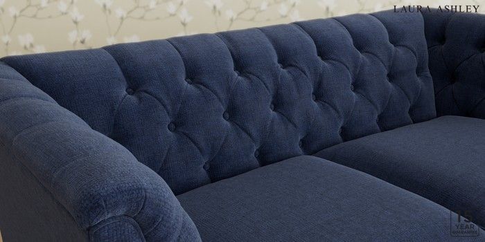 6.12.1 Buy Chatsworth Button Back by Laura Ashley 2 Seater Sofa Nantmor Midnight Navy Straight Brass Castor - Light Oak from the Laura Ashley online shop Click here to use our website with more accessibility support, for example screen readers