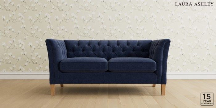 6.12.1 Buy Chatsworth Button Back by Laura Ashley 2 Seater Sofa Nantmor Midnight Navy Straight Mid - Light Oak from the Laura Ashley online shop Click here to use our website with more accessibility support, for example screen readers