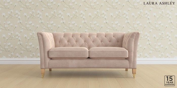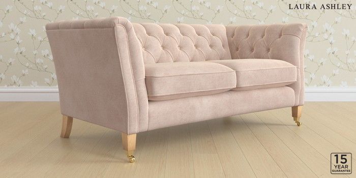 6.12.1 Buy Chatsworth Button Back by Laura Ashley 2 Seater Sofa Orla Chalk Pink Straight Brass Castor - Light Oak from the Laura Ashley online shop Click here to use our website with more accessibility support, for example screen readers