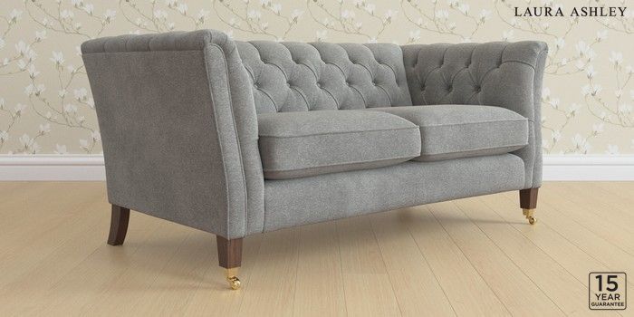 6.12.1 Buy Chatsworth Button Back by Laura Ashley 2 Seater Sofa Wooton Dark Steel Grey Straight Brass Castor - Chestnut from the Laura Ashley online shop Click here to use our website with more accessibility support, for example screen readers