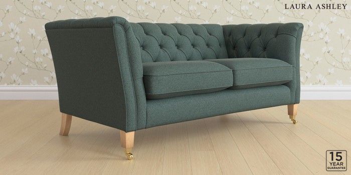 6.12.1 Buy Chatsworth Button Back by Laura Ashley 2 Seater Sofa Wooton Forest Green Straight Brass Castor - Light Oak from the Laura Ashley online shop Click here to use our website with more accessibility support, for example screen readers