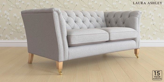 6.12.1 Buy Chatsworth Button Back by Laura Ashley 2 Seater Sofa Wooton Pale Steel Grey Straight Brass Castor - Light Oak from the Laura Ashley online shop Click here to use our website with more accessibility support, for example screen readers