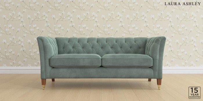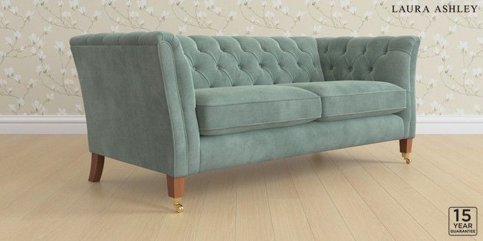 6.12.1 Buy Chatsworth Button Back by Laura Ashley 3 Seater Small Sofa Ailsworth Fern Green Straight Brass Castor - Teak from the Laura Ashley online shop Click here to use our website with more accessibility support, for example screen readers