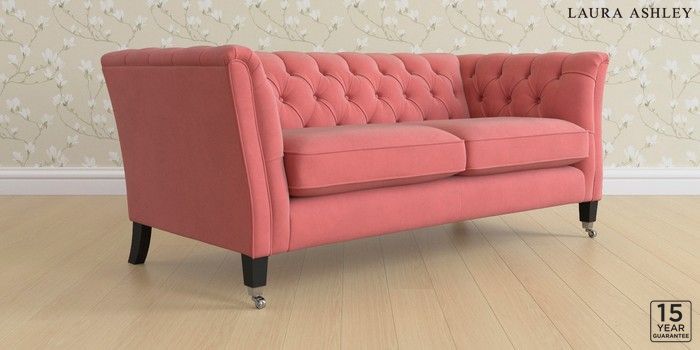 6.12.1 Buy Chatsworth Button Back by Laura Ashley 3 Seater Small Sofa Ailsworth Old Rose Pink Straight Chrome Castor - Black from the Laura Ashley online shop Click here to use our website with more accessibility support, for example screen readers