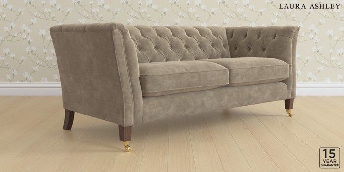 6.12.13 Buy Chatsworth Button Back by Laura Ashley 3 Seater Small Sofa Alwyn Velvet Truffle Natural Straight Brass Castor - Chestnut from the Laura Ashley online shop Click here to use our website with more accessibility support, for example screen readers