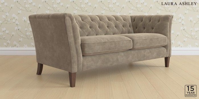 6.12.1 Buy Chatsworth Button Back by Laura Ashley 3 Seater Small Sofa Alwyn Velvet Truffle Natural Straight Mid - Chestnut from the Laura Ashley online shop Click here to use our website with more accessibility support, for example screen readers
