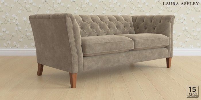 6.12.1 Buy Chatsworth Button Back by Laura Ashley 3 Seater Small Sofa Alwyn Velvet Truffle Natural Straight Mid - Teak from the Laura Ashley online shop Click here to use our website with more accessibility support, for example screen readers