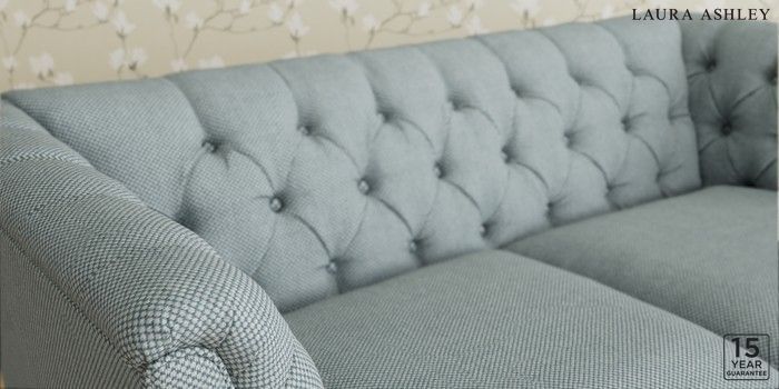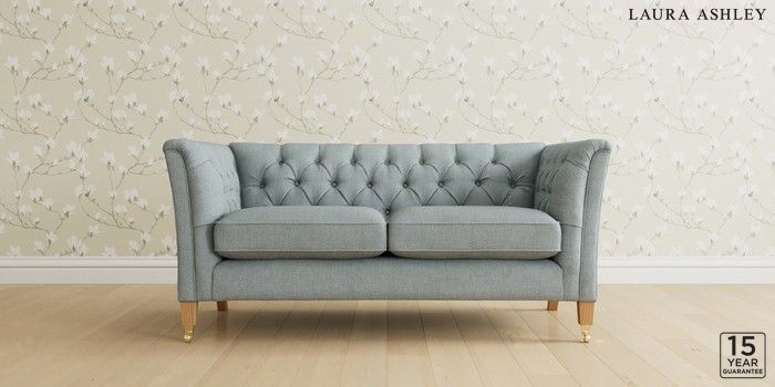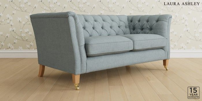 6.12.1 Buy Chatsworth Button Back by Laura Ashley 3 Seater Small Sofa Anneliese Seaspray Blue Straight Brass Castor - Light Oak from the Laura Ashley online shop Click here to use our website with more accessibility support, for example screen readers