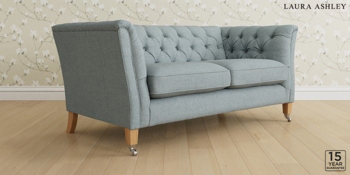 6.12.1 Buy Chatsworth Button Back by Laura Ashley 3 Seater Small Sofa Anneliese Seaspray Blue Straight Chrome Castor - Light Oak from the Laura Ashley online shop Click here to use our website with more accessibility support, for example screen readers