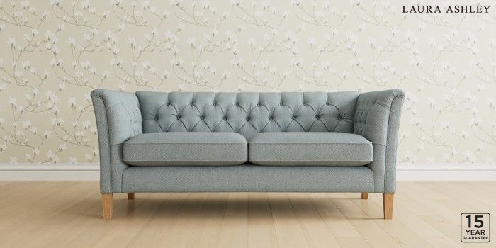 6.12.1 Buy Chatsworth Button Back by Laura Ashley 3 Seater Small Sofa Anneliese Seaspray Blue Straight Mid - Light Oak from the Laura Ashley online shop Click here to use our website with more accessibility support, for example screen readers