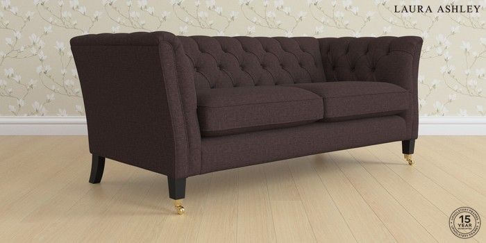 7.0.3 Buy Chatsworth Button Back by Laura Ashley 3 Seater Small Sofa Bainton Chocolate Brown Straight Brass Castor - Black from the Laura Ashley online shop Click here to use our website with more accessibility support, for example screen readers
