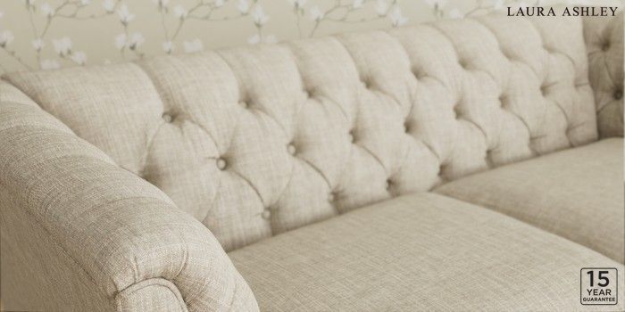 6.12.1 Buy Chatsworth Button Back by Laura Ashley 3 Seater Small Sofa Bainton Natural Straight Mid - Teak from the Laura Ashley online shop Click here to use our website with more accessibility support, for example screen readers