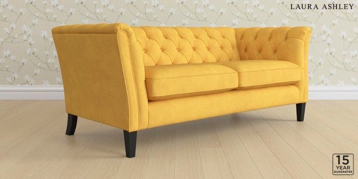 6.12.13 Buy Chatsworth Button Back by Laura Ashley 3 Seater Small Sofa Bainton Ochre Yellow Straight Mid - Black from the Laura Ashley online shop Click here to use our website with more accessibility support, for example screen readers