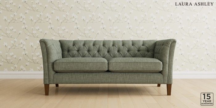 6.12.1 Buy Chatsworth Button Back by Laura Ashley 3 Seater Small Sofa Bainton Sage Green Straight Mid - Teak from the Laura Ashley online shop Click here to use our website with more accessibility support, for example screen readers