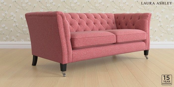 6.12.1 Buy Chatsworth Button Back by Laura Ashley 3 Seater Small Sofa Anneliese Rosewood Red Straight Chrome Castor - Black from the Laura Ashley online shop Click here to use our website with more accessibility support, for example screen readers